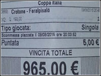 Uno scommettitore che si accorse della quota astronomica messa in palio dal bookmakers, non perse tempo a scommettere sulla vittoria del Crotone. Il sistema accettò la giocata senza problemi. Quindi all'attento scommettitore rimaneva solo di sperare nella vittoria del Crotone.